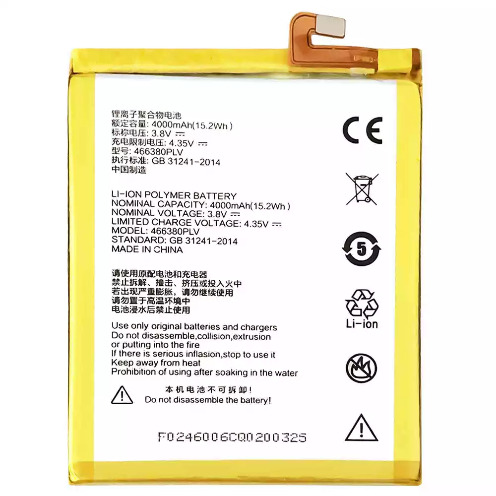 Aku 466380PLV sobib ZTE Blade A610/BA610T/A610T/A610C/BA610C