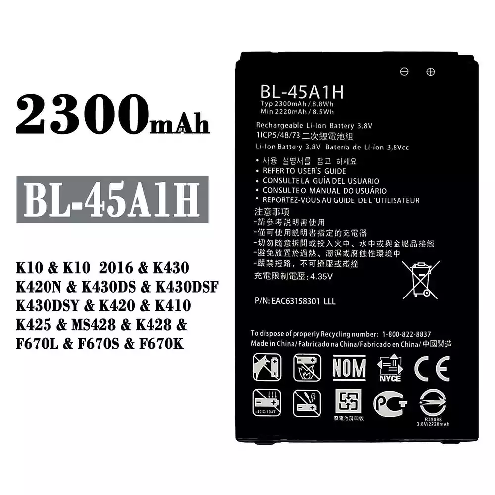 Aku BL-45A1H sobib LG K10 / K10 2016 / K430 / K420N / K430DS / K430DSF / K430DSY / K420 / K410 / K425 / MS428 / K428 / F670L / F670S / F670K