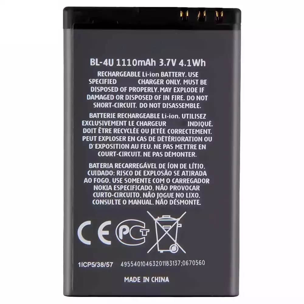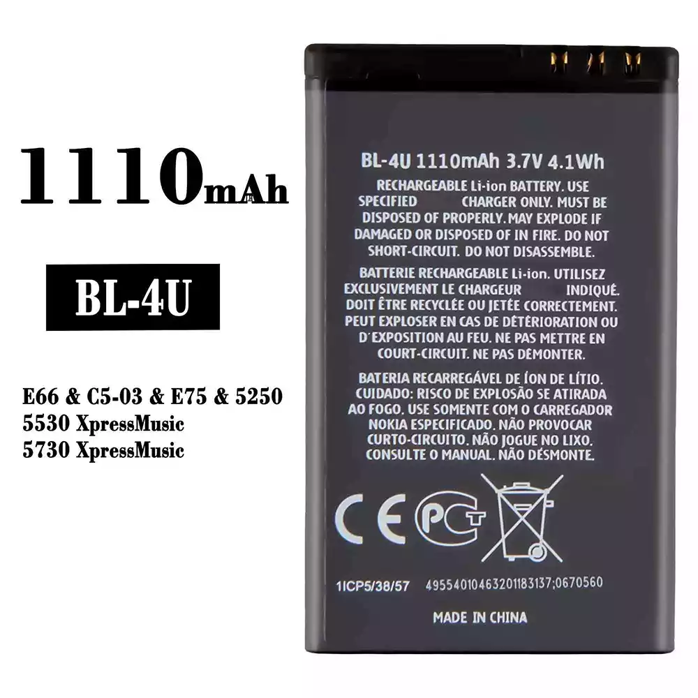 Aku BL-4U sobib Nokia E66 / C5-03 / E75 / 5250 / 5530 XpressMusic / 5730 XpressMusic
