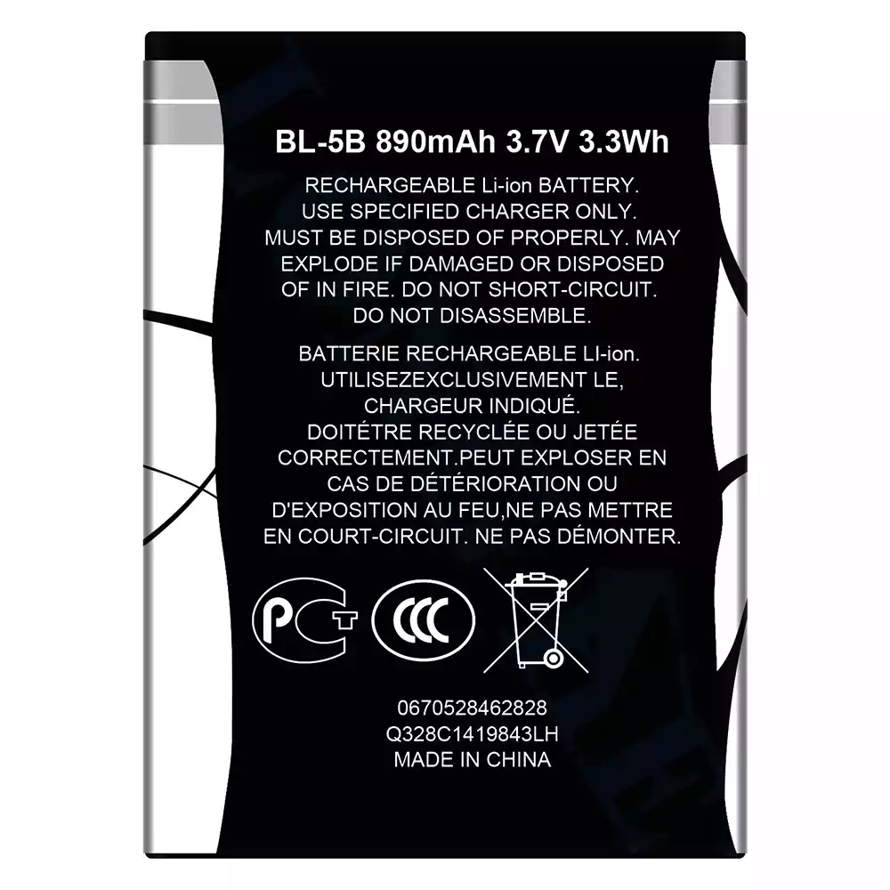 Aku BL-5B sobib Nokia 3230/3220/5140/5300/5320/7360/6120C/5070