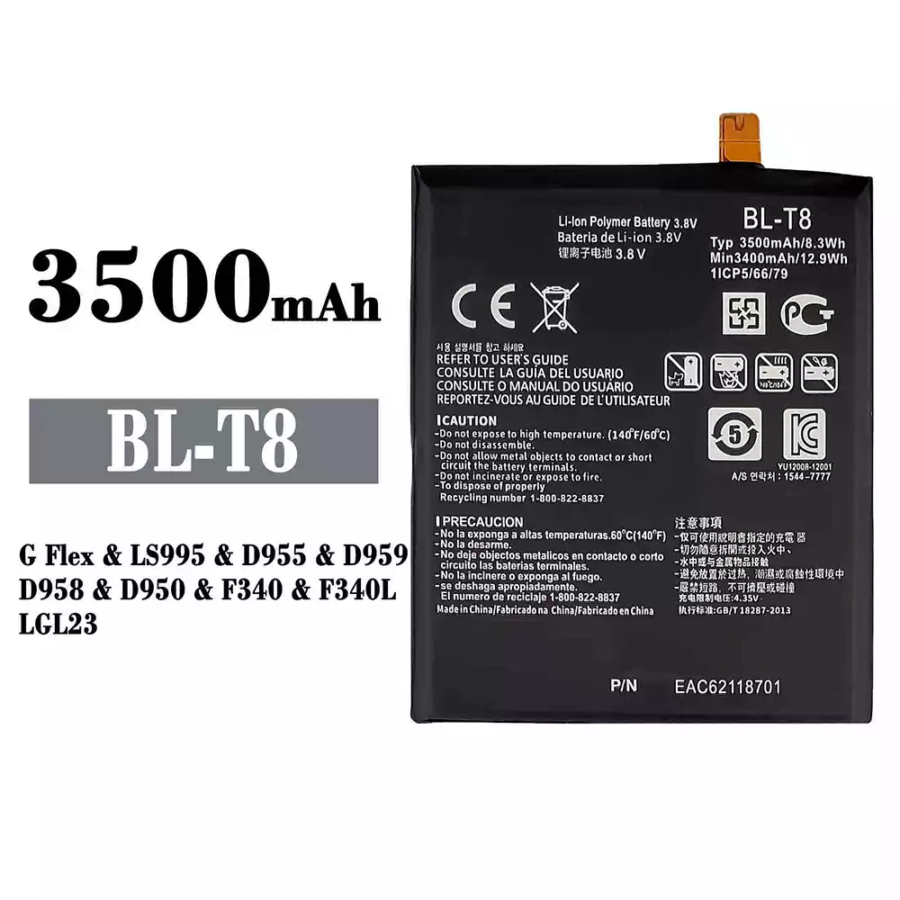 Aku BL-T8 sobib LG G Flex / LS995 / D955 / D959 / D958 / D950 / F340 / F340L / LGL23