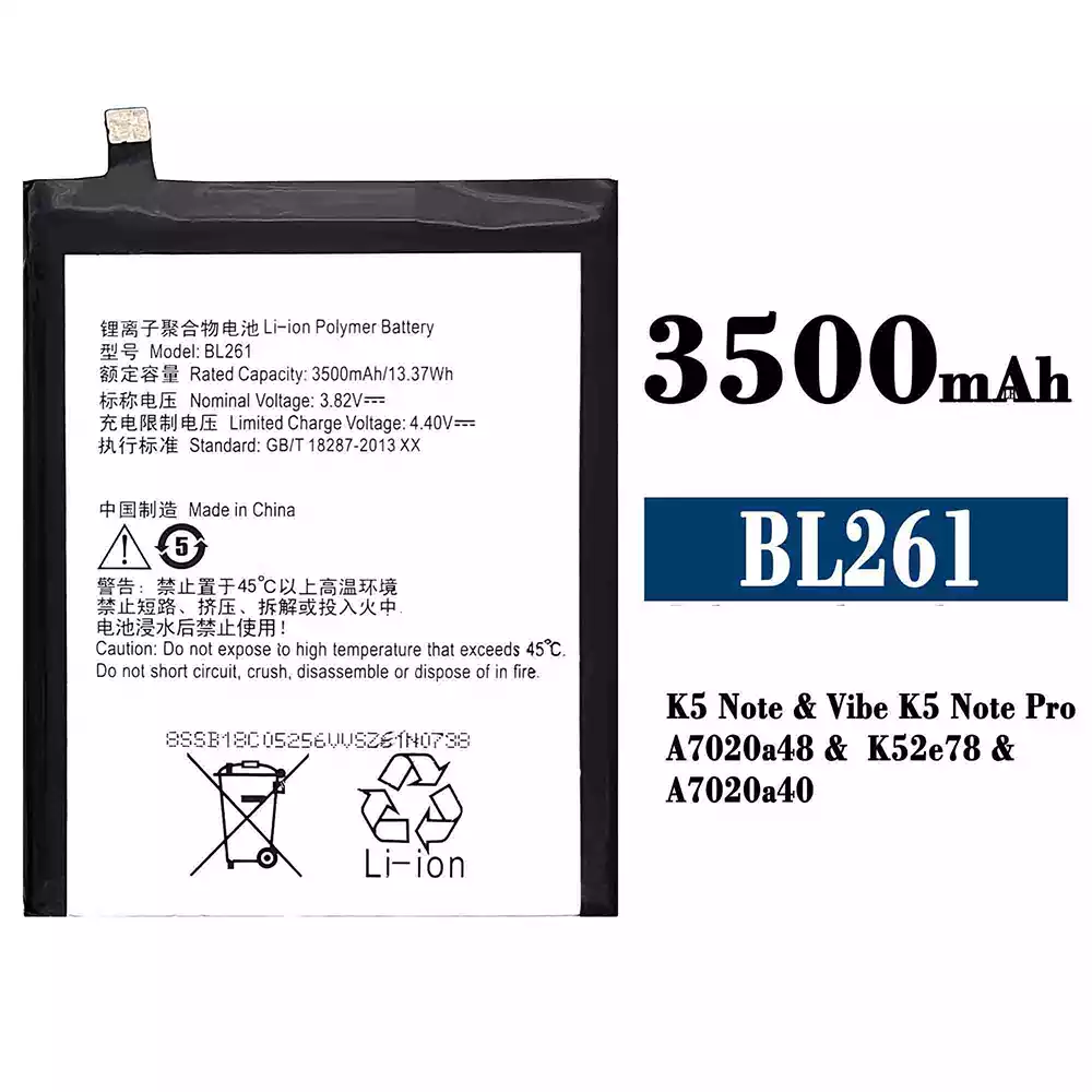 Aku BL261 sobib Lenovo K5 Note / Vibe K5 Note Pro / A7020a48 / K52e78 / A7020a40