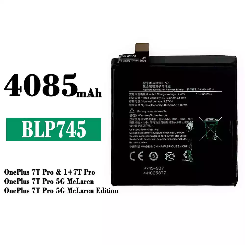 Aku BLP745 sobib OnePlus 7T Pro