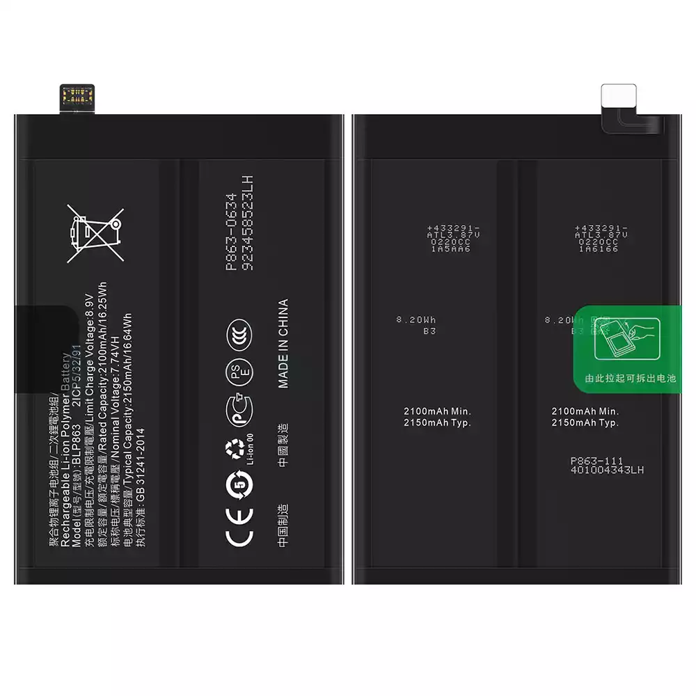 Aku BLP863 sobib OPPO RENO 6 5G / CPH2251 / PEQM00
