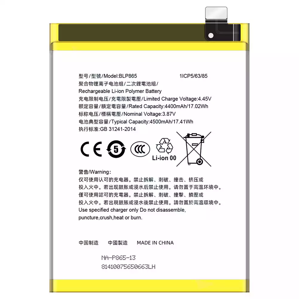 Aku BLP865 sobib OPPO K9 Pro 5G/PEYM00