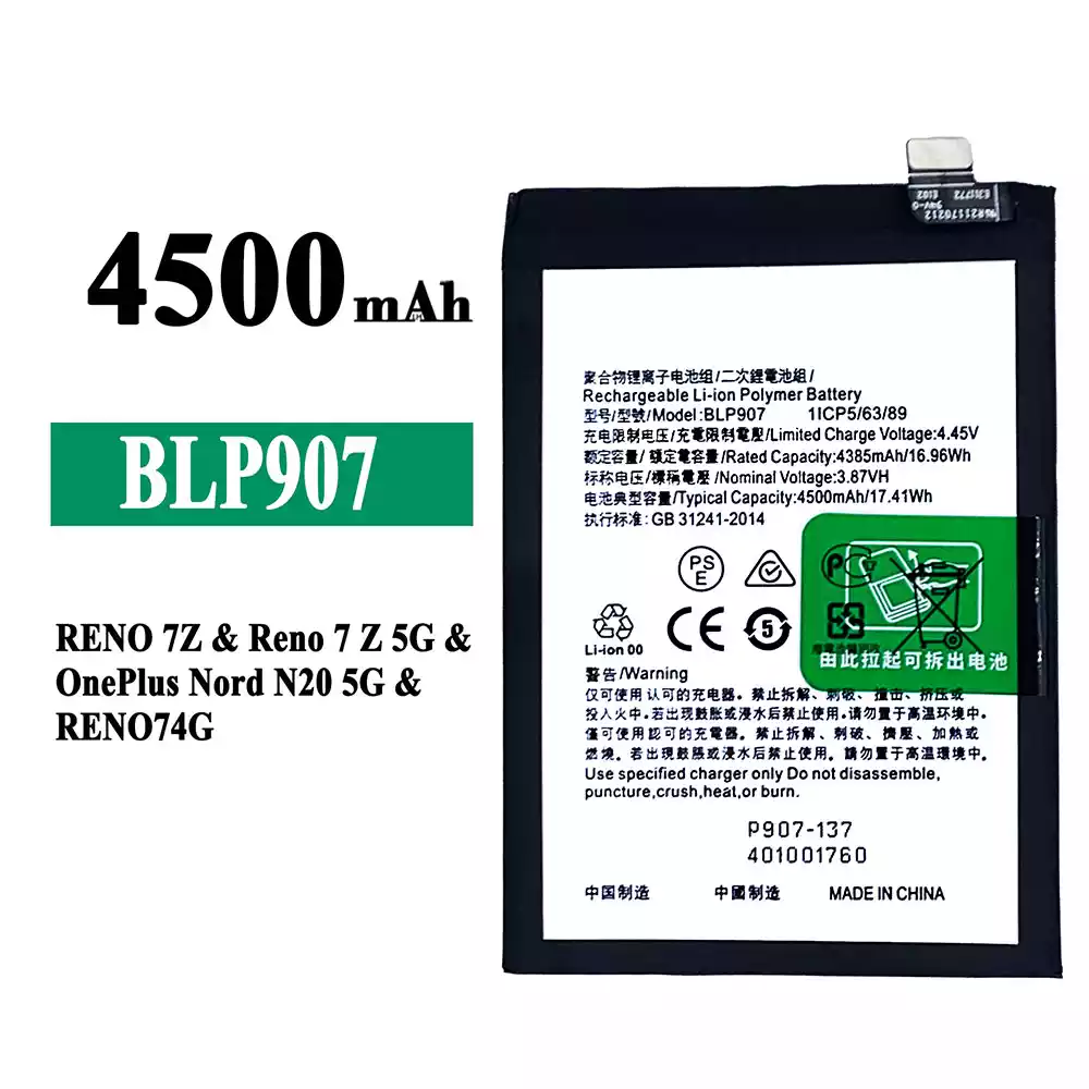 Aku BLP907 sobib OPPO RENO 7Z / Reno 7Z 5G / OnePlus Nord N20 5G / RENO 74G / RENO 8 4G