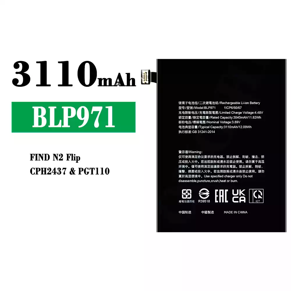 Aku BLP971 sobib OPPO FIND N2 Flip/CPH2437/PGT110