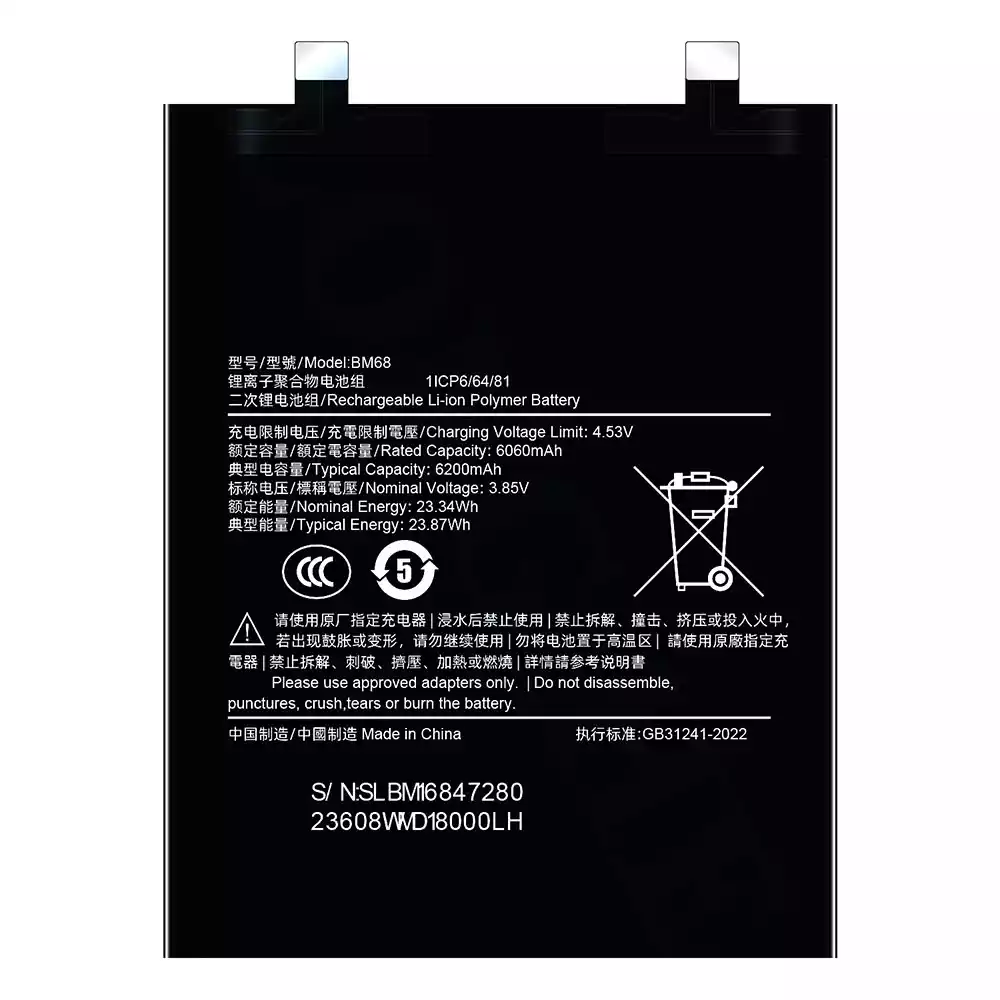 Aku BM68 sobib Xiaomi Redmi Note 14 Pro Plus