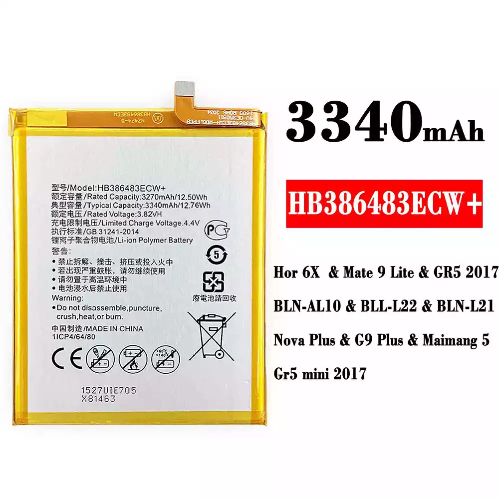 Aku HB386483ECW+ sobib HUAWEI Honor 6X / Mate 9 Lite / GR5 2017 / BLN-AL10 / BLL-L22 / BLN-L21 / Nova Plus / G9 Plus / Maimang 5 /Gr5 mini 2017