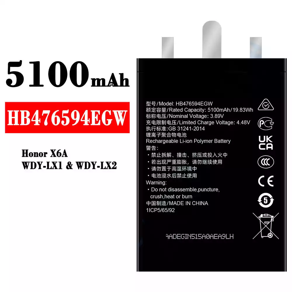 Aku HB476594EGW sobib HUAWEI Honor X6A / WDY-LX1 / WDY-LX2