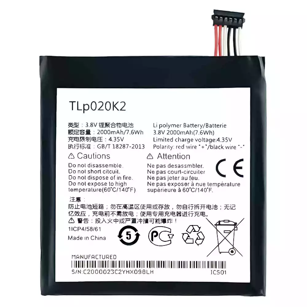 Aku TLP020K2 sobib Alcatel Ido1 3 4.7/6039Y/6039H/6039K