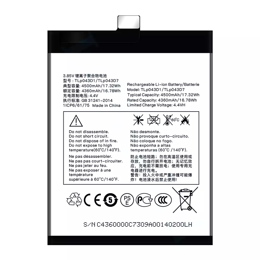Aku TLP043D1/TLP043D7 sobib Alcatel TCL 10 Plus/TCL 20 Plus/TCL 10 pro/TCL 20 pro